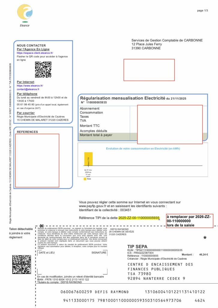 Nous vous confirmons que votre facture est payable sur le site Payfip en modifiant l’année de prise en charge.